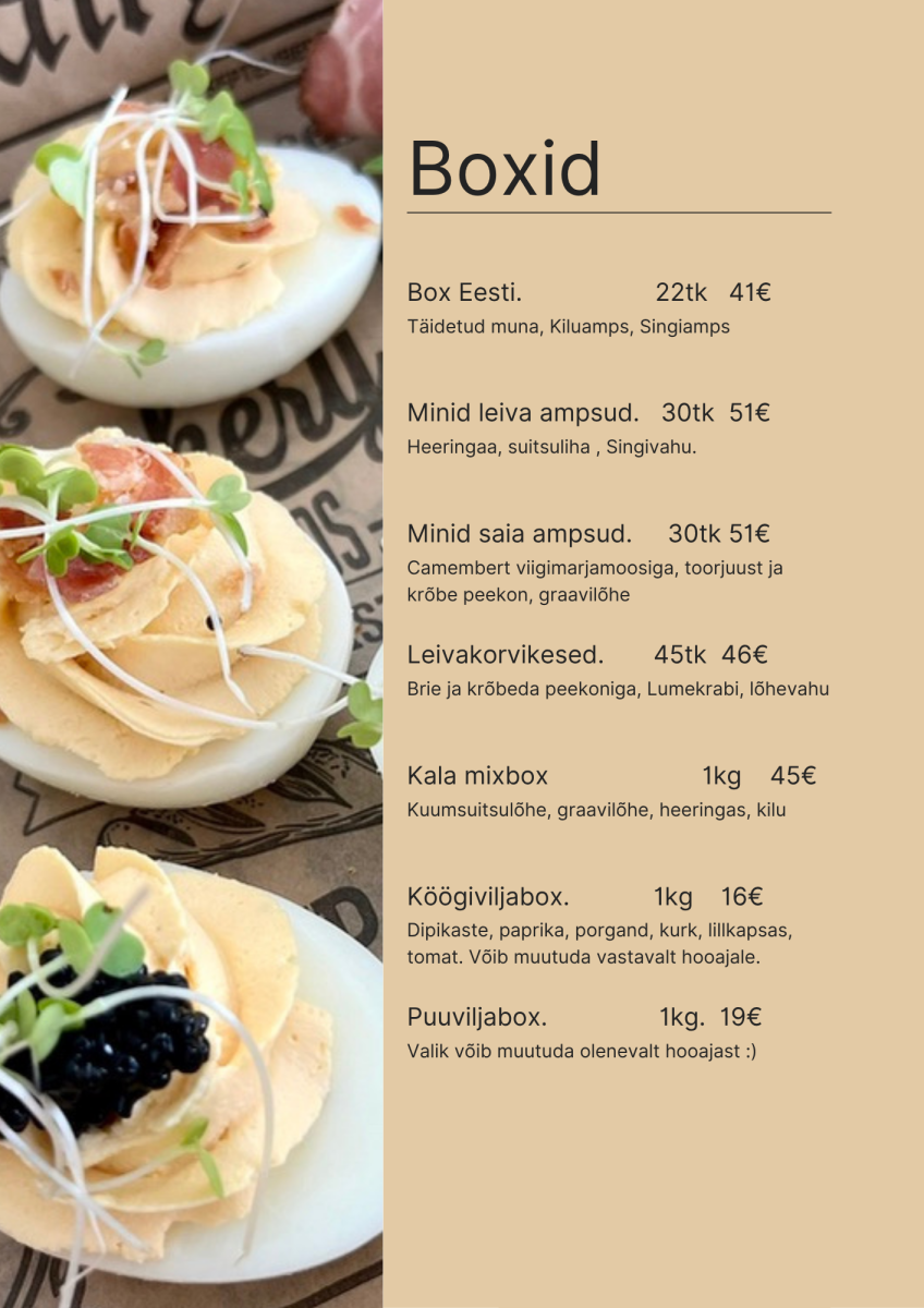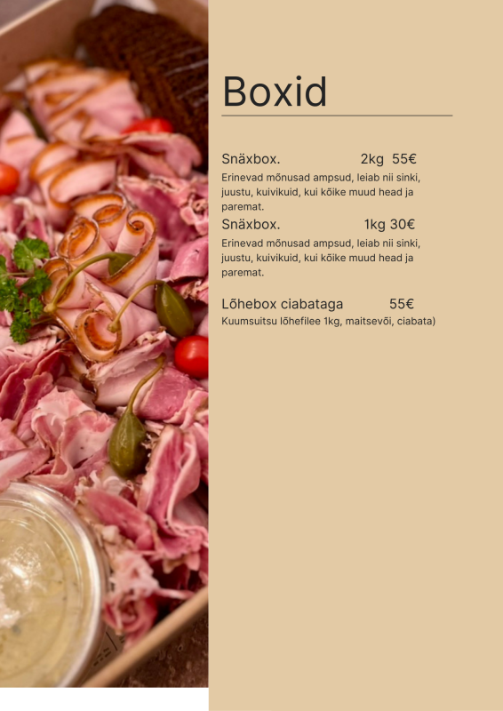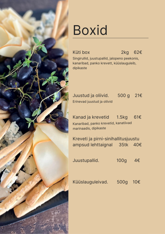 * Suupisteboxid – liha-, kala-, juustu- ning juurvilja- ja puuviljaboxid