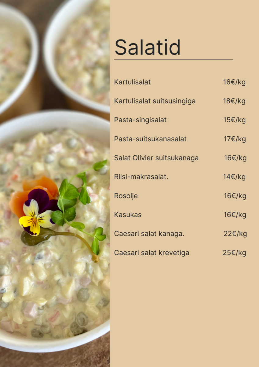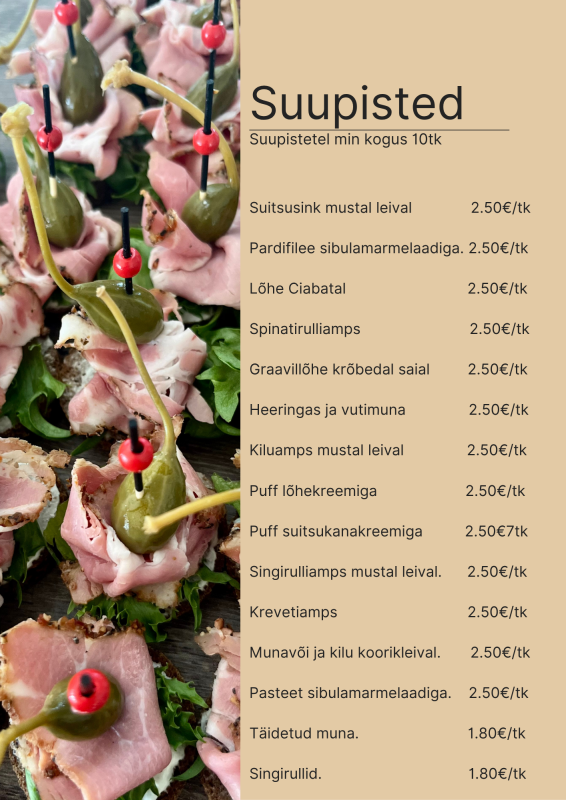 NB! Suupistete tellimusi ootame vähemalt 3 päeva ette, suuremate tellimuste puhul soovime infot vähemalt 5 päeva ette.