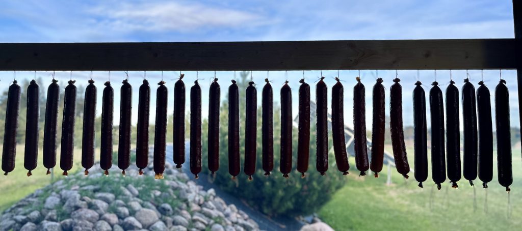 – Küti Suitsuvorst sinihallitusjuustuga ~300g latt ja hinnaks 6.50€/tk